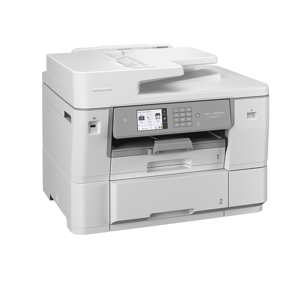 MFC-J6959DW został zaprojektowany z myślą o firmach, które potrzebują urządzenia wielofunkcyjnego A3 o niskim zużyciu energii. Bez konieczności wstępnego nagrzewania jakichkolwiek komponentów wewnętrznych, model zużywa mniej energii. Wszystko to przy zachowaniu wysokiej jakości i prędkości druku, której potrzebuje Twoja firma.