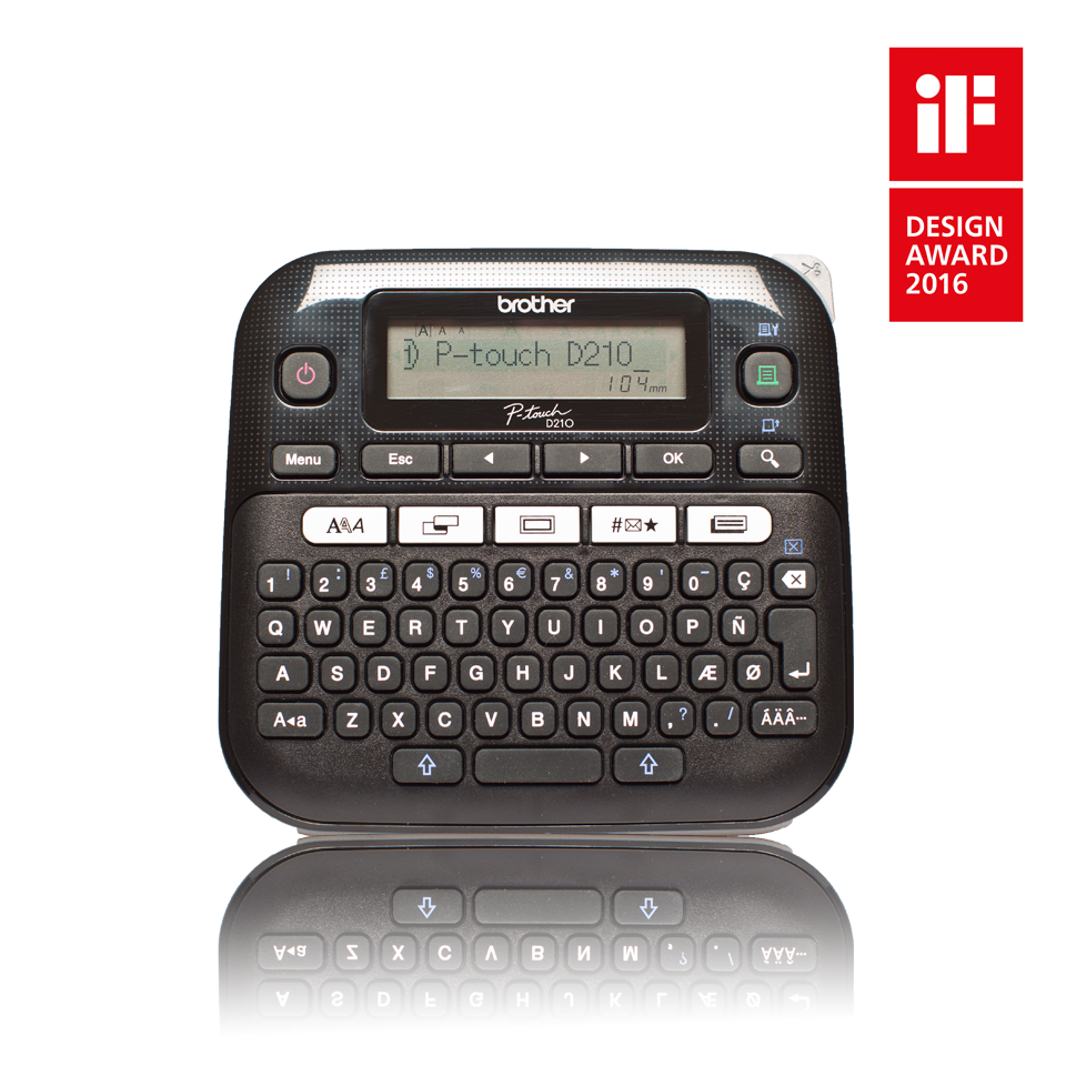 PT-D210 to nabiurkowa drukarka etykiet charakteryzująca się wygodną i prostą obsługą. Jest wyposażona w pełną klawiaturę QWERTY i w 5 wygodnych klawiszy funkcyjnych. Urządzenie oferuje także system obsługi polskich znaków. Klawiatura ma niski profil, co ułatwia wpisywanie danych, a klawisze funkcyjne pozwalają na szybkie tworzenie i drukowanie etykiet.